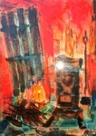 2019Op glas geschilderd, aquarel en losse pigmenten